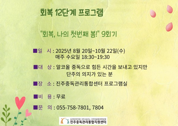 상반기때 공지를 올렸었던 "알코올 중독 회복프로그램" 에 대한 안내글을 올립니다.